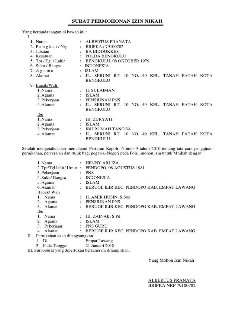 Surat Permohonan Izin Nikah Pdf